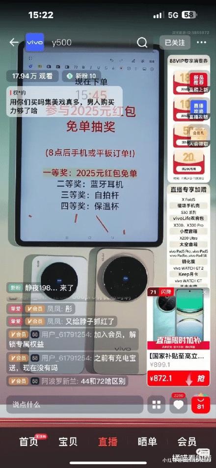 11月29日,vivo官方直播间在一场常规产品直播中出现争议操作。两条带有性别歧视倾向的用户评论被置顶展示,内容分别为“用你们买吗集美戏真多,男人购买力够了哈”(15:22)和“不需要女用户哦,购买力太差”(19:39)。