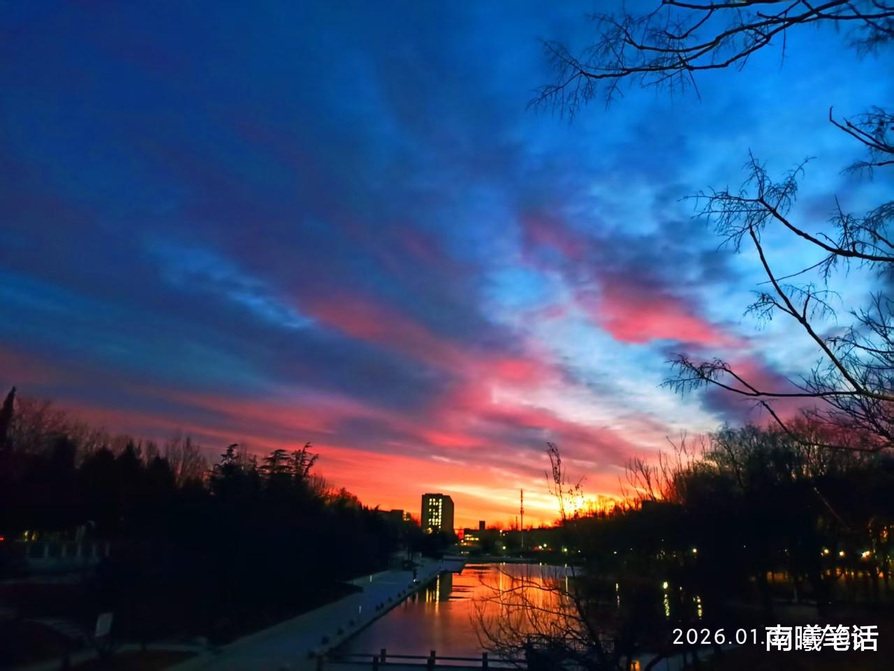 怀着满心的期待与兴奋,我快步出门,朝着公园的方向走去。一路上,我的脚步轻快而有力,脑海中不断浮现出那片赤霞的模样,想象着在公园里看到的朝霞会有多么壮观。