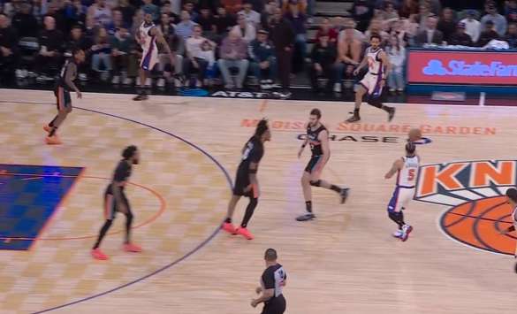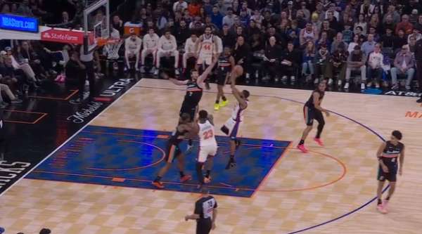 佯装在右翼出手追身三分点飞扑防的瓦塞尔,