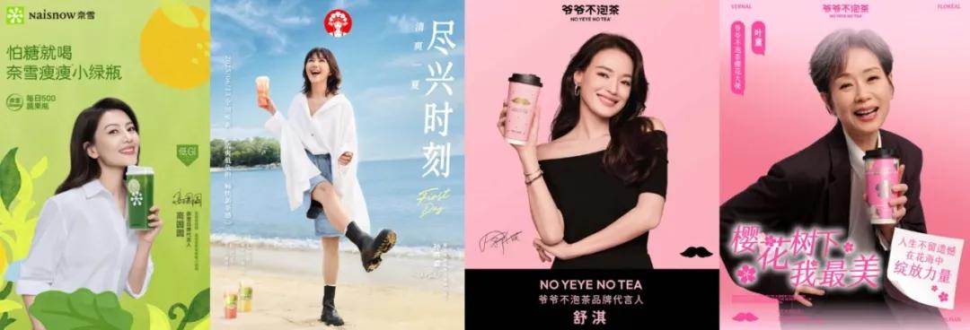 受众群体的错位也很常见。以家庭用户为主,曾坚持“不找代言人”理想汽车请来易烊千玺担任品牌首位代言人。反过来,锚定年轻消费群的奶茶行业掀起“中女”代言潮,奈雪签下高圆圆,霸王茶姬拿下孙燕姿,爷爷不泡茶先后合作叶童、舒淇;更有深受Z世代喜爱的Miu Miu牵手八十高龄的吴彦姝。