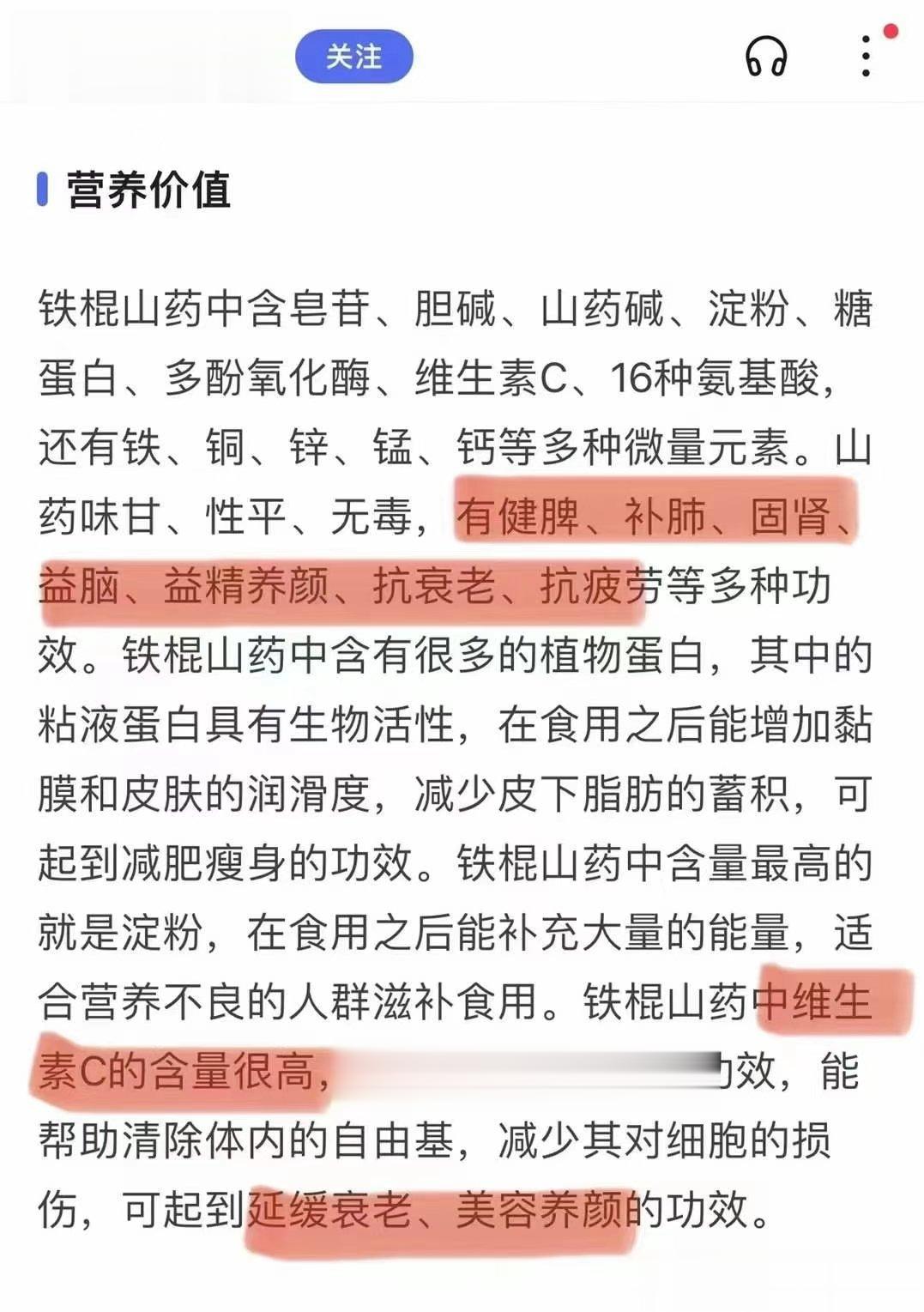 山药有何功效?百度一下答案宁夏医科大学总医院陈主任说,健脾胃,补中益气,养肺,降低血糖,益心安神,请认准产地,河南焦作市。