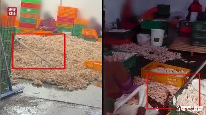 主要问题是双氧水漂白+脏乱生产:川渝多家工厂(蜀福香、曾巧食品等)用35%高浓度双氧水浸泡鸡爪,违规增白增重;车间污水横流、鸡爪直接扔地上、工人无健康证“裸加工”;印刷泡椒造假:包装印满泡椒图案,袋内无一颗实物泡椒,风味全靠香精勾兑;低价小品牌普遍存在。