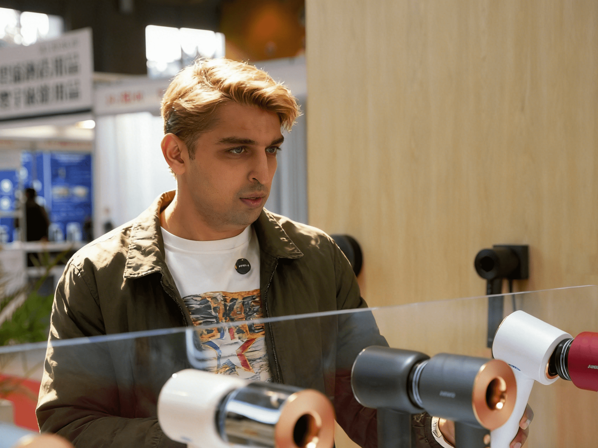 还有个美国男生在研究零速龙卷风卷发棒三合一能搞定直发卷发高颅顶说是给女朋友带的,但自己研究得比谁都认真