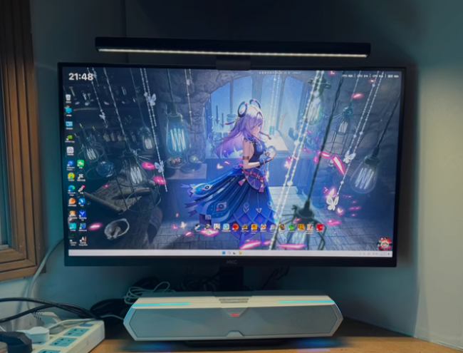 屏幕挂灯什么牌子好?这款屏幕挂灯同样做了非对称投光结构,不过实际用下来,对屏幕反光的压制效果比较一般,亮度调高之后显示器上还是容易出现反射,而且光线相对来说比较刺眼,容易引起眼睛不适。显色能力属于基础水平,Ra80左右,日常照明没有问题,但在看图片、视频或需要辨别颜色的场景下,真实度会差一些。放在显示器上使用时偶尔会有松动的情况,移动屏幕时需要多注意。