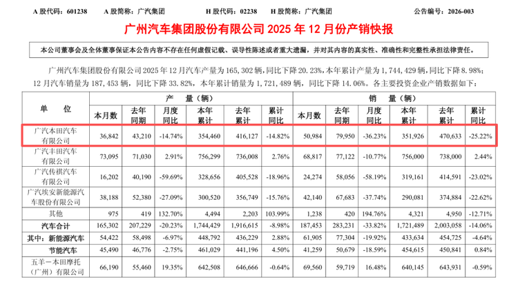 同样的,人事调整也没能带来转机。2025年8月,广汽集团调任高洪祥接替李进担任广汽本田执行副总经理,希望这位技术派高管能带队“救场”。但从2025年下半年及2026年1月的销量数据来看,人事变动带来的效果并不明显。