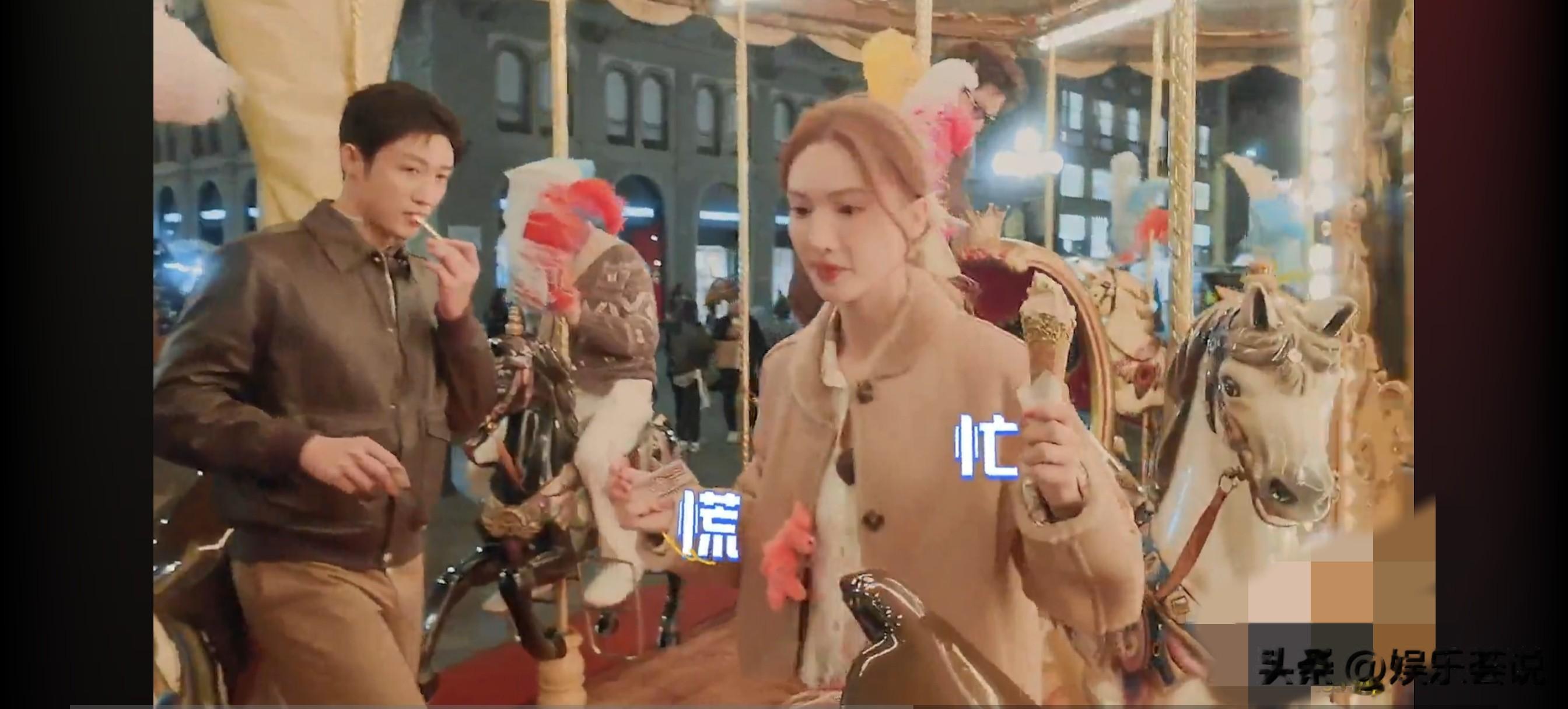 两人边走边聊,到了旋转木马跟前,金晨因为拿着冰激凌没办法坐上去,黄景瑜紧跟在金晨后面,看到金晨的窘迫后,马上拿过金晨的冰激凌,让金晨坐上去了。