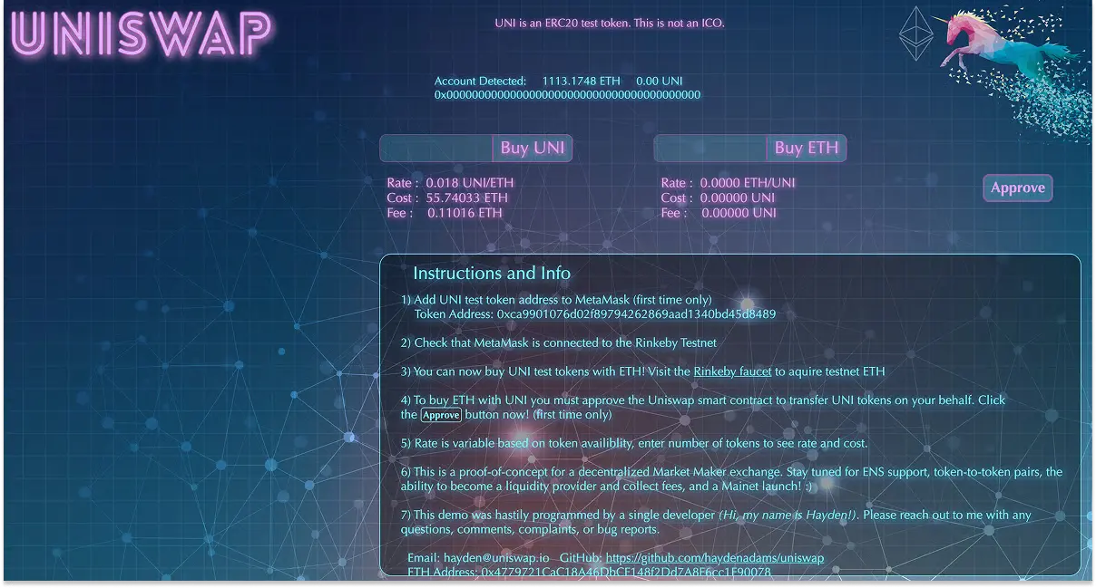 受到 Vitalik 关于自动做市商文章的启发,Hayden 在 2017 年底构建了 Uniswap 的第一个概念验证。