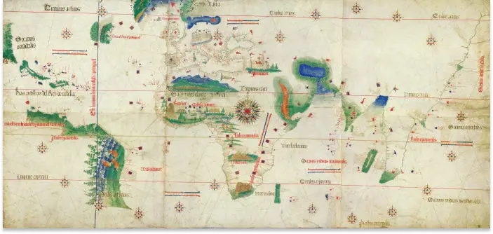 这张 1502 年的地图被称为坎蒂诺平面图,是葡萄牙的国家机密。地图很快被偷走并走私到意大利,但仅凭地图不足以复制葡萄牙的优势。意大利国家缺乏这些发现背后的作经验:大西洋级船只、 对海风航线的精通 、对印度洋季风周期的深入了解以及长距离天文导航经验。没有这些专业知识,通往亚洲的航线无法可靠地复现。