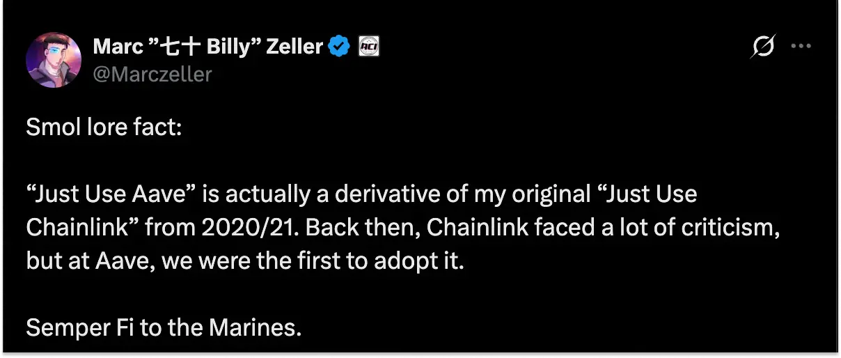 早在 2020 年,Aave 就做出了大胆的举措。他们将 Chainlink(主网仅存在了大约 7 个月)作为预言机提供商 , 并允许人们使用 LINK 作为抵押品。这一举措让(非常激烈的)LINK 队员变成了 Aave 的大支持者,帮助推广这款产品。