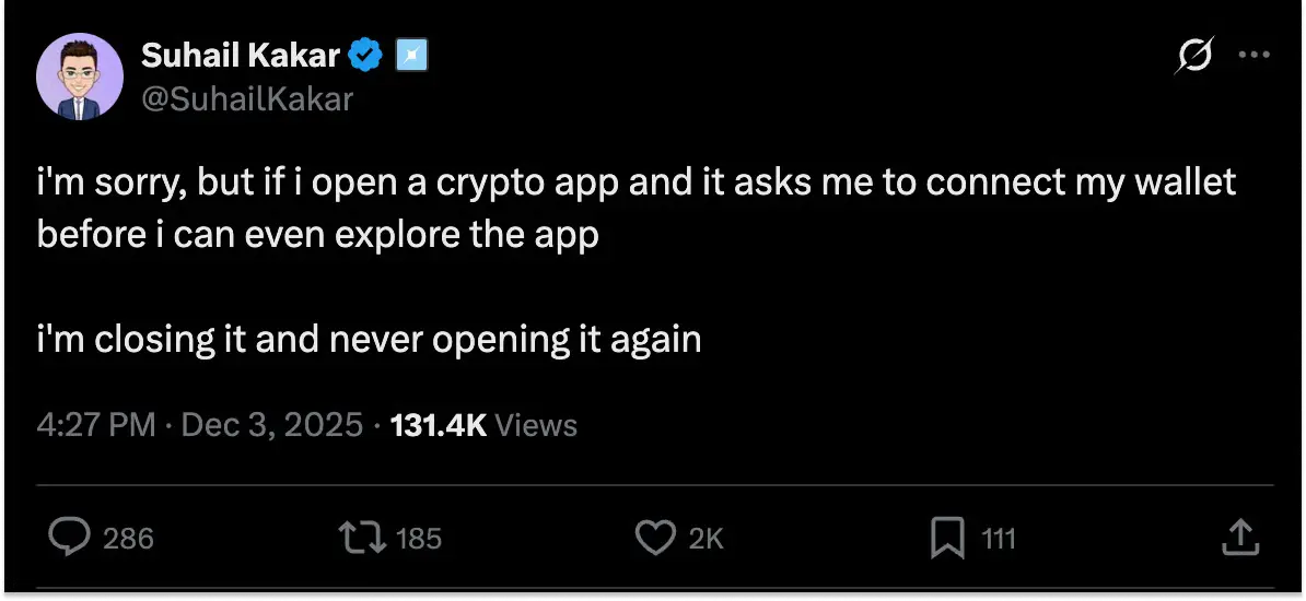我说的合适用户是指不是机器人、不是刷空投、也不是“随便看”的人。换句话说,合适的用户是能够长期使用产品且适合你产品阶段的人。产品阶段的契合很重要,因为你不希望在产品处于 alpha 阶段、还需要一定的加密专业知识时,出现大量普通用户。