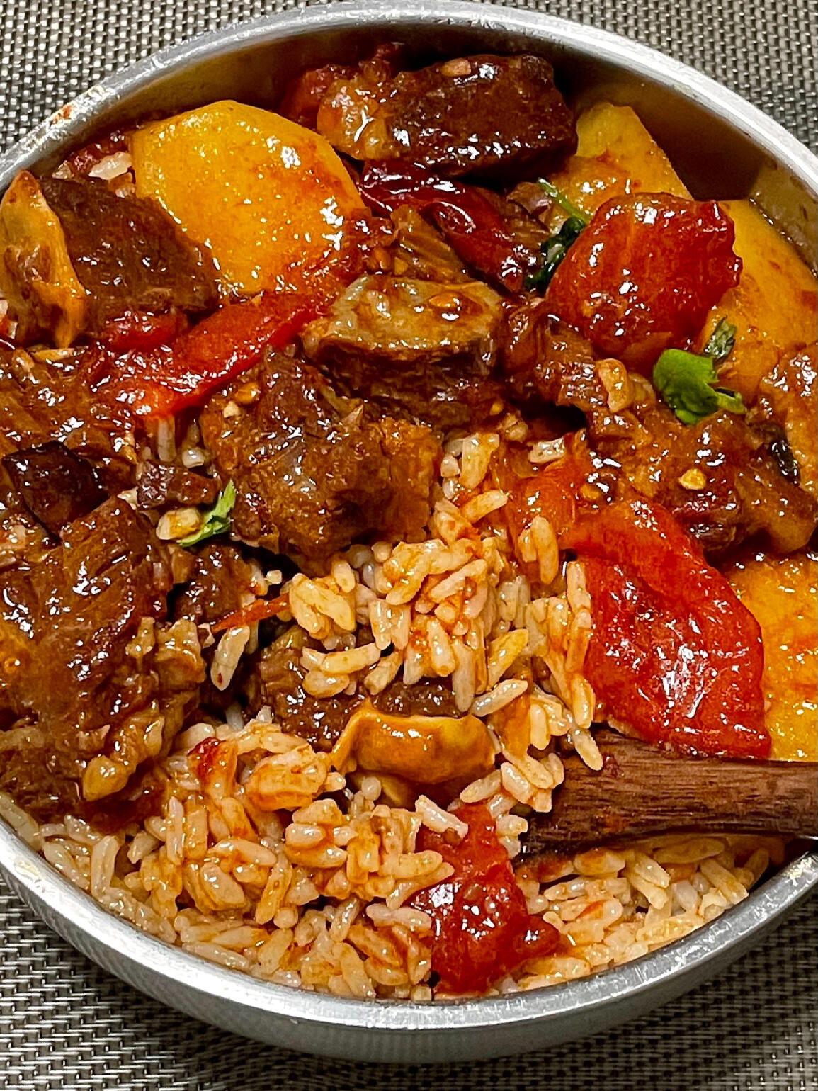 盛一碗热腾腾的白米饭,浇上浓郁的番茄汤汁,放上几块酥烂的牛腩和粉糯的土豆,一口下去,酸甜开胃,肉香四溢,从胃里暖到心里。
