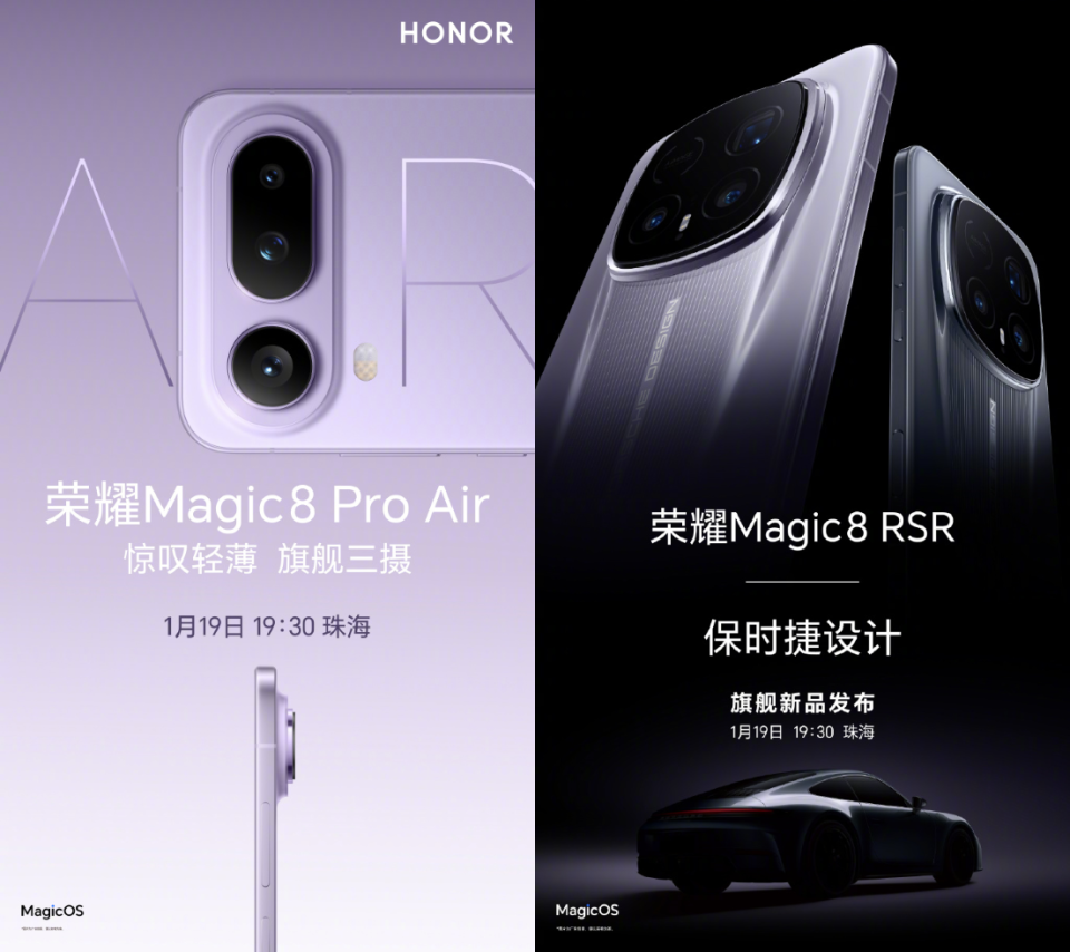 定档1月19日,荣耀王炸双旗舰齐发,Magic8 RSR保时捷设计+Pro Air官宣