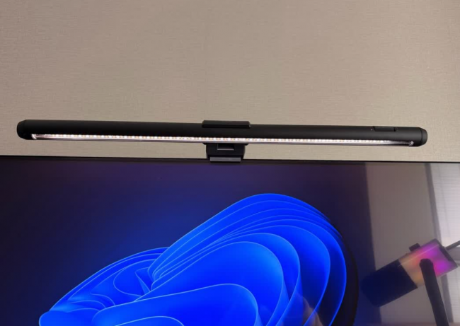 显示器挂灯哪个好?这款屏幕挂灯使用全金属外壳,重量会比较重,因此更适合安装在台式显示器上使用,如果是笔记本使用不太合适。采用非对称出光设计,灯光主要落在键盘和桌面区域,对屏幕反射有一定抑制效果,不过在高亮度或角度不合适的情况下,还是能看到一些反光,对视觉舒适度会有一点影响。操作方面配的是独立遥控器,可以直接调节亮度和色温,不用频繁去碰灯体,但比较容易没电,需要勤更换电池。