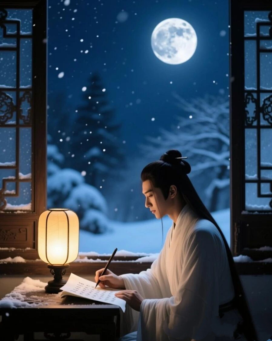 立深宵、呵雾成文:愿君身健,莫染尘氛。
