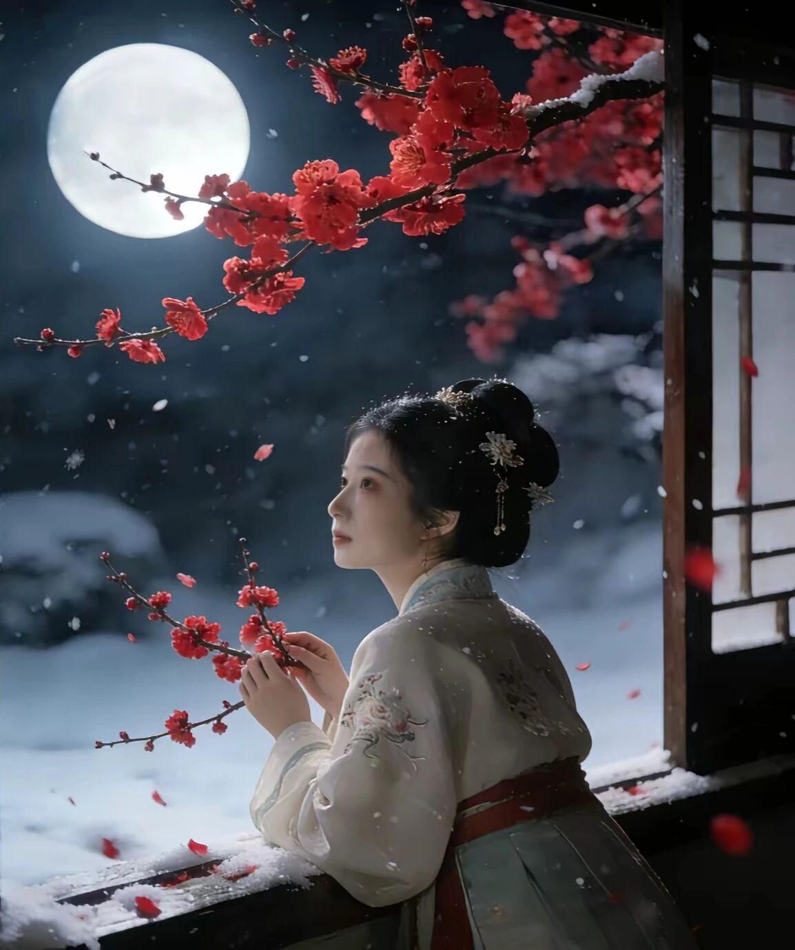 似岭头梅,檐角月,鬓边云。
