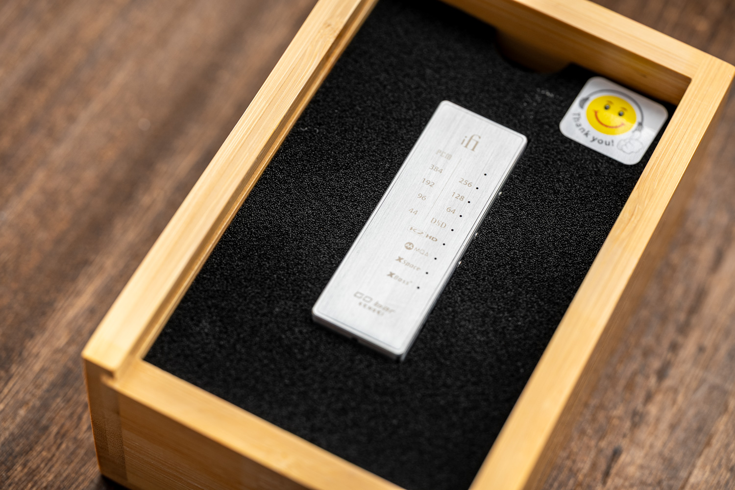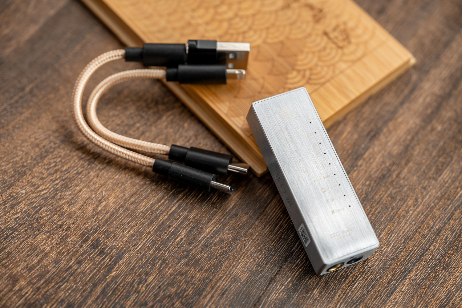 仔细看背面的指示灯部分的话,不难看出剑圣比前代多出了一个K2 HD功能,它是来自JVC的一项技术,开启后可将音频文件升频至24Bit/192kHz,然后应用选定的K2参数进行波形矫正、扩展高频,恢复数字化过程中丢失的音频数据。这个技术其实已经颇有年头了、而且在两声道音响领域里也有多年的应用,当年首次被便携玩家所熟知还是因为JVC自家退出的蓝牙颈挂式设备,它有一个特性就在于不会带来升频所可能出现的数码味过重的问题,能够保留很多健康的谐波,听起来反而能够给音色增添几分宽松与模拟味,如果你手头没有太好的音源设备,也只是喜欢接手机电脑听听国产流媒体软件里的歌曲,那么K2技术其实可以很大程度地为你的音源部分增色,从源头方面就会显得比标准版的Go Bar来的更温暖、更适合人声类曲目的演绎,同时能在中频密度上带来一定的强化。