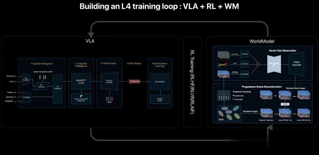 理想的观点是,当前数据闭环已经不够用了,VLA通往L4,需要训练闭环。