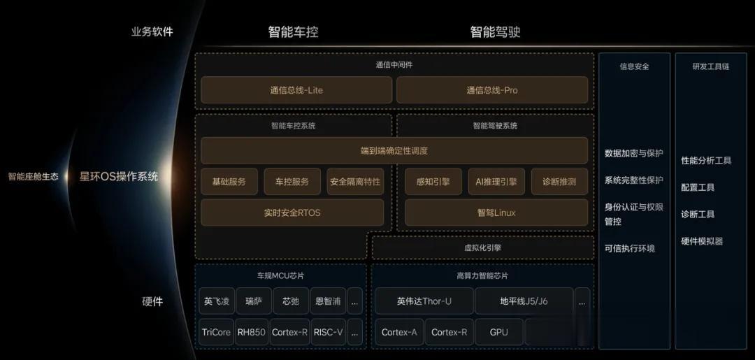 数百亿砸向的不仅仅是上层的辅助驾驶算法,还包括底层的整车操作系统理想星环OS。星环OS首次上车于2024年,一方面实现了开发过程中的软硬件解耦,将芯片的适配和验证加快至4周内完成。