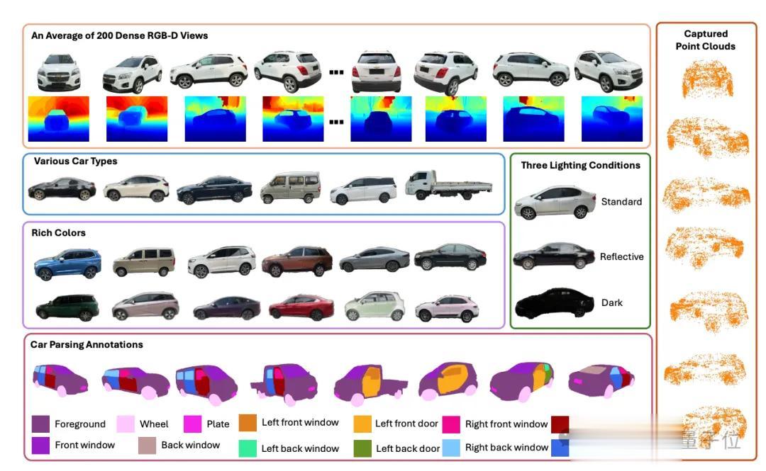 由于数据集中的每辆车都提供了RGB-D图像、点云、车辆解析图和详细标注信息,因此该数据集可用于各种2D和3D任务,用于重建各种场景。