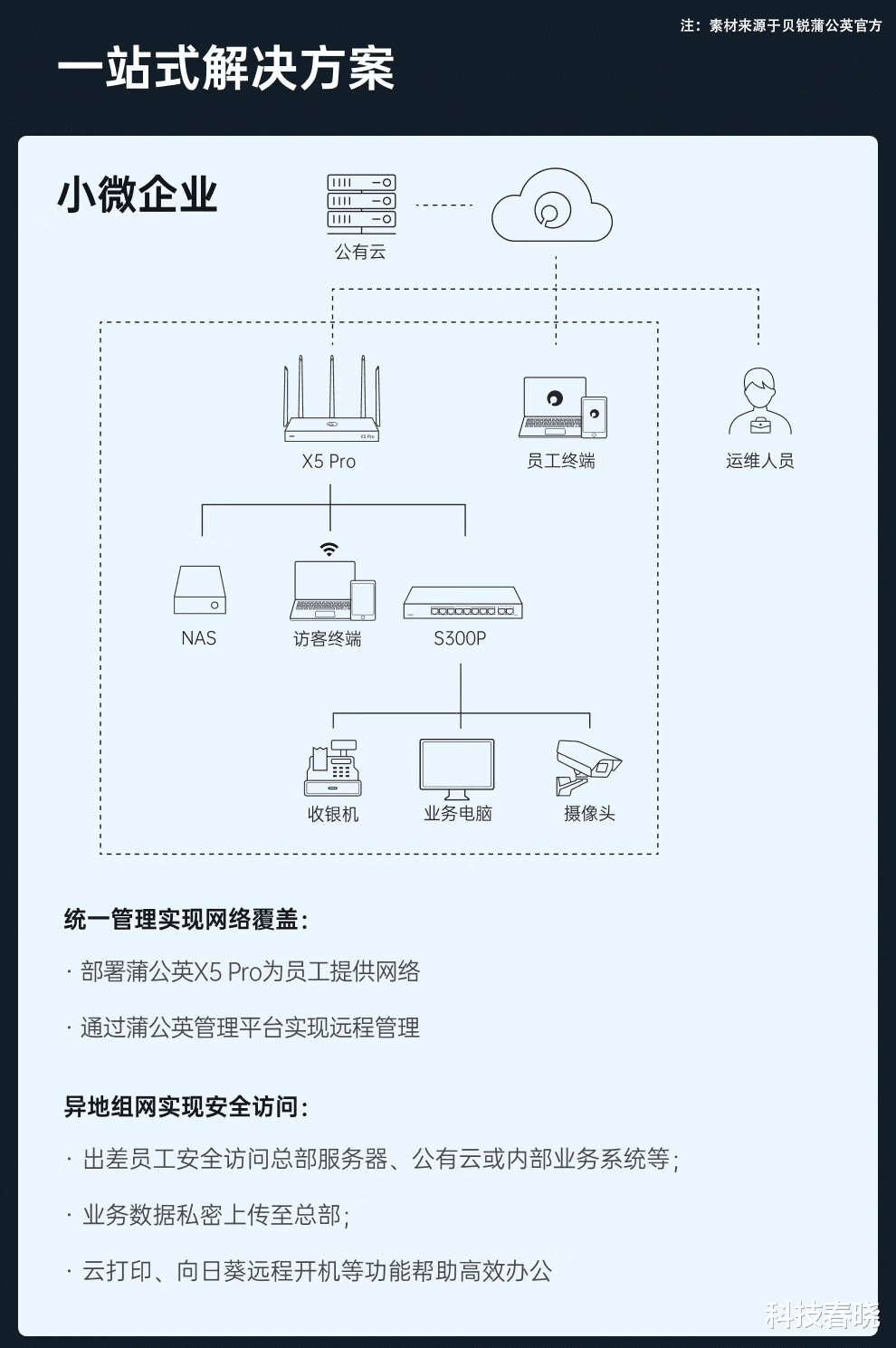 除此之外,贝锐蒲公英官方也为商用场景的网络搭建提供了一站式解决思路和拓补图,比如: