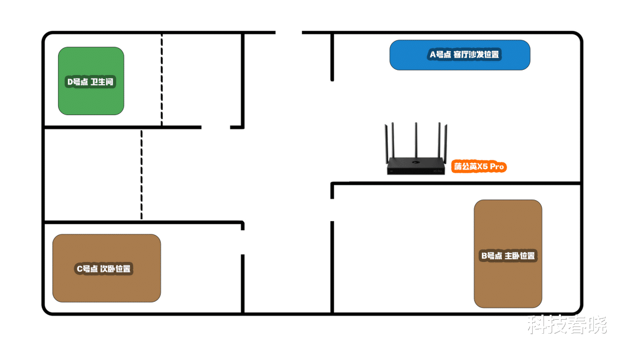 D号点是卫生间,有一堵墙加一道玻璃隔断遮挡,实际测试的下行速率是550M。