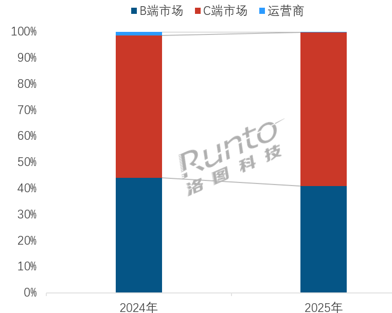 C端渠道的市场主导地位进一步增强。根据洛图科技(RUNTO)推总数据显示,2025年,C端渠道在整体市场的销量占比提升至了58.9%,较2024年增长了4.4个百分点。