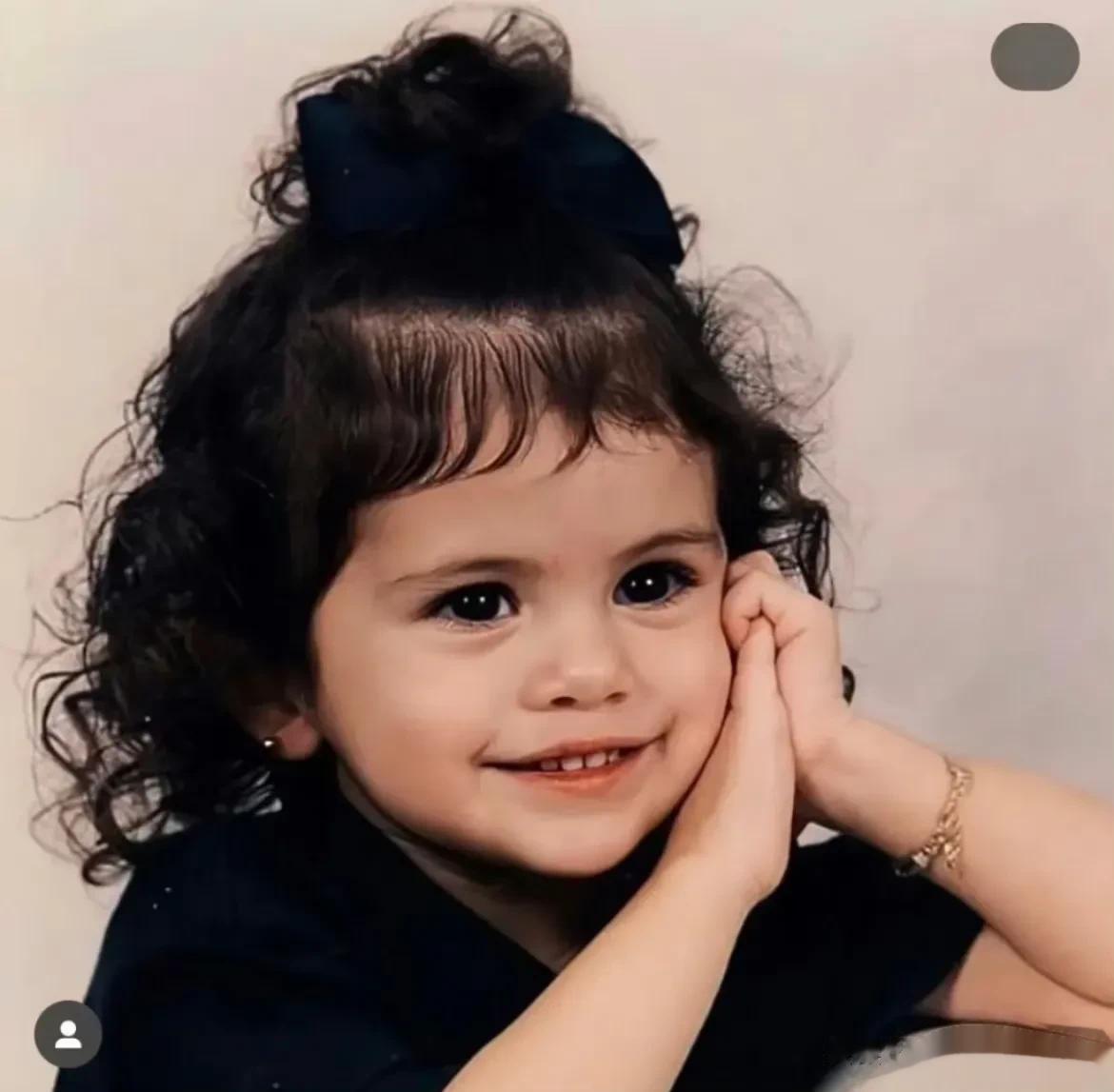 赛琳娜·戈麦斯小时候这发量太让人羡慕了,就像个洋娃娃一样,天生的发量王者呀,要不