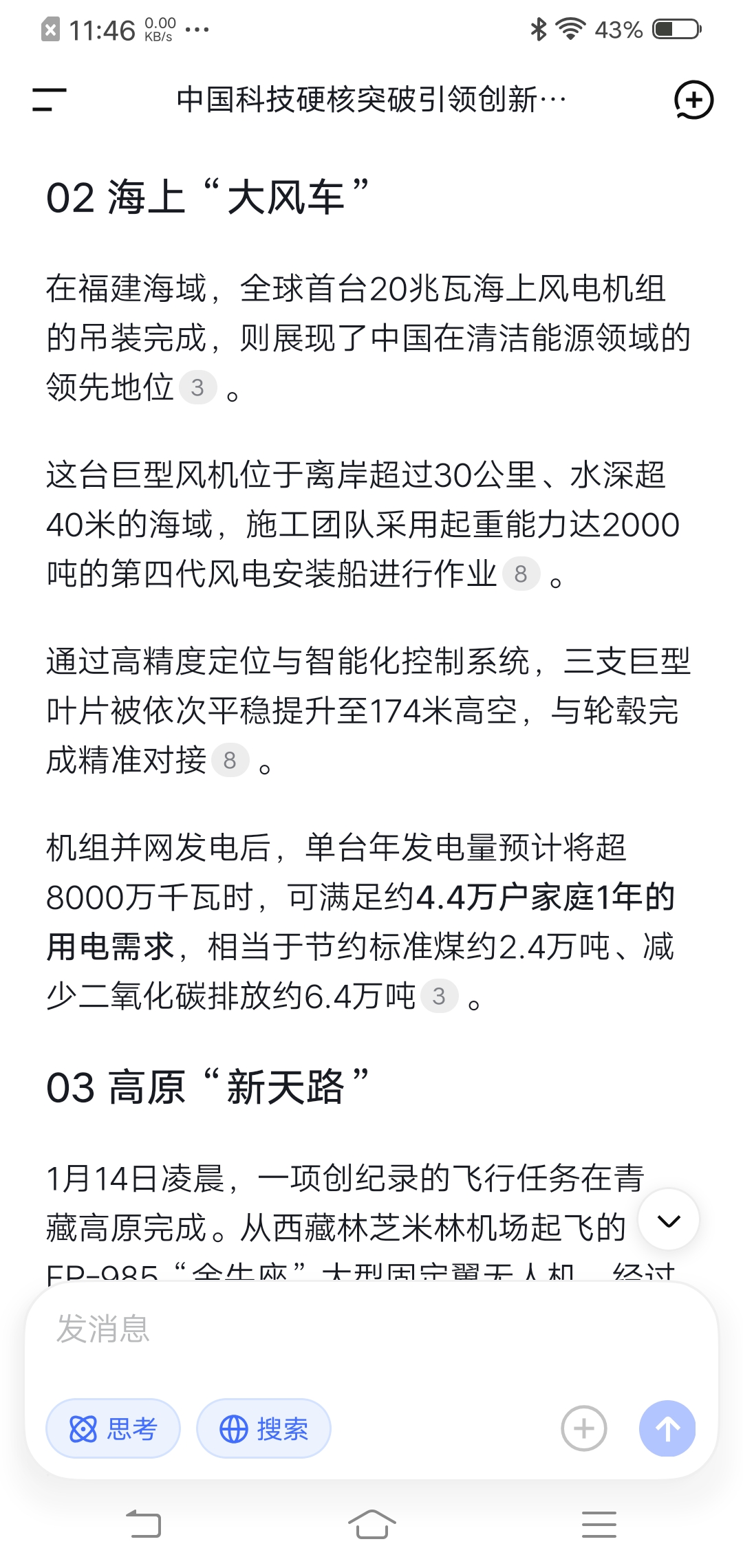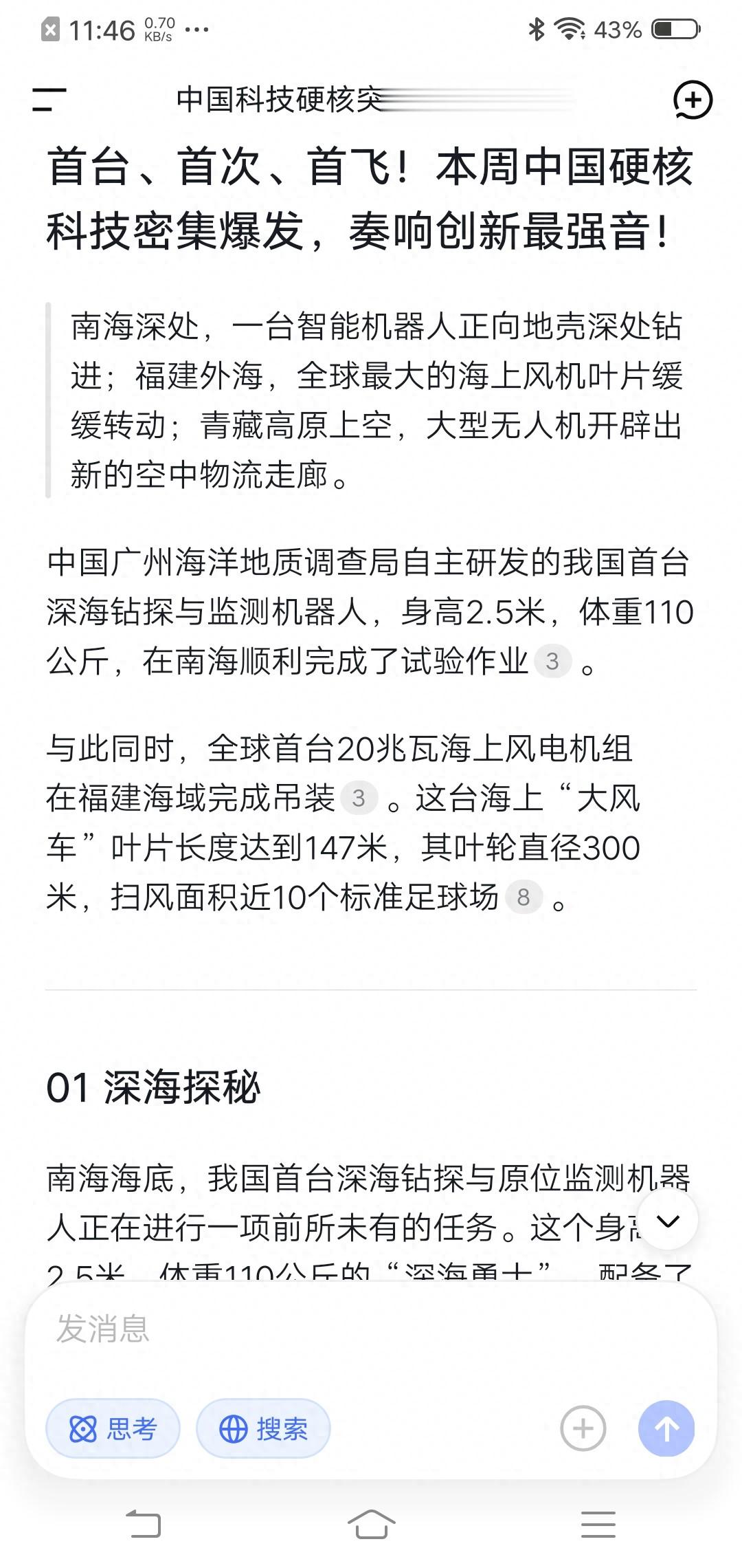南海深处,一台智能机器人正向地壳深处钻进;福建外海,全球最大的海上风机叶片缓缓转动;青藏高原上空,大型无人机开辟出新的空中物流走廊。