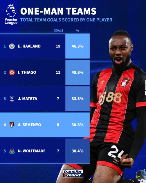 本赛季,25岁的塞梅尼奥在英超赛场彻底“爆表”。出战16场,贡献8球3助攻,直接参与了伯恩茅斯全队30.8%的进球。在一支并非以火力著称的中游球队中,如此表现堪称惊艳。他全面的进攻能力与防守贡献,使其迅速从不被关注的球员跻身顶级豪门视野。