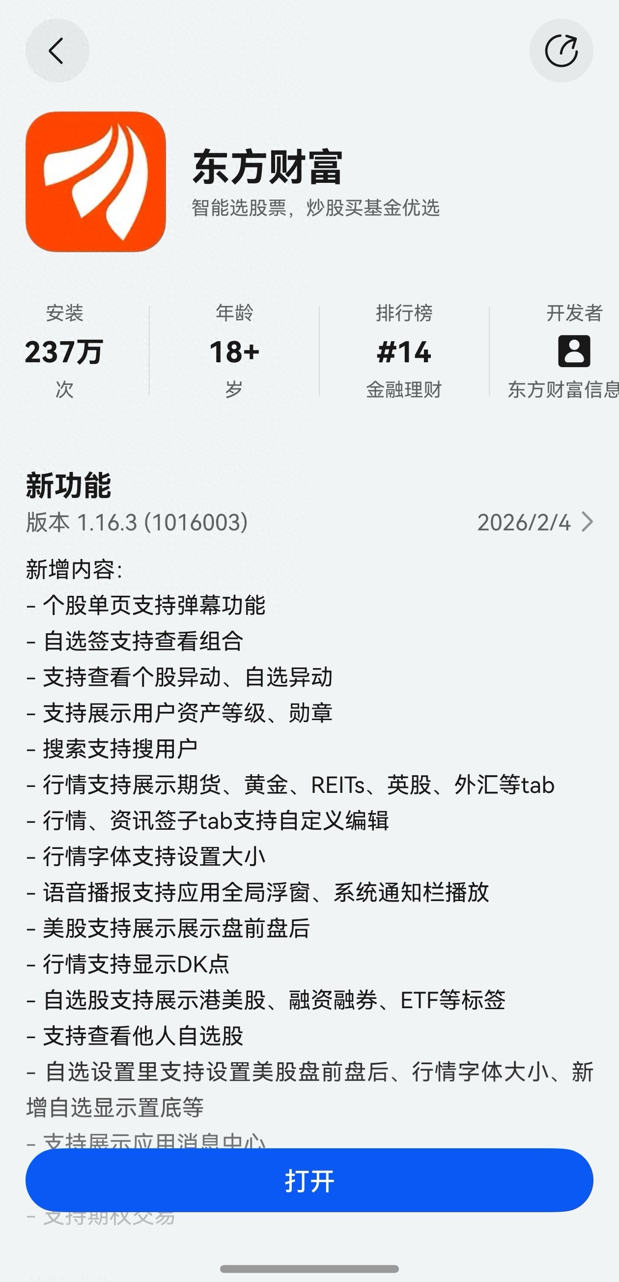 2026 年春节,理财市场不打烊,机遇无处不在。从期权交易拓宽收益边界,到全球行情全覆盖助力资产配置,再到互动功能升级增添社交属性,鸿蒙版东方财富的此次更新,不仅是功能的迭代,更是对春节理财场景的深度适配,成为投资者的“春节理财好帮手”。赶紧更新,解锁你的专属智能投资新体验吧!