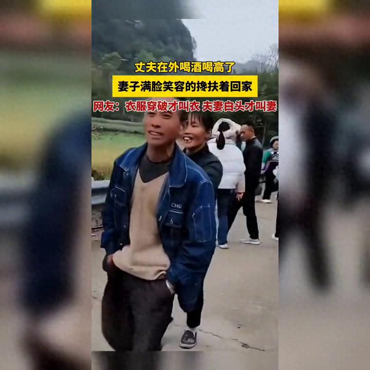 丈夫在外喝酒喝高了,妻子满脸笑容的搀扶着回家。网友:衣服穿破才叫衣,夫妻白头才叫妻。
