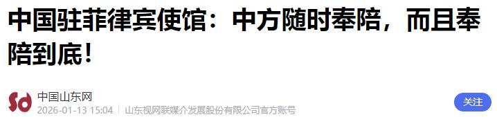 中国驻菲律宾使馆:中方随时奉陪,而且奉陪到底!