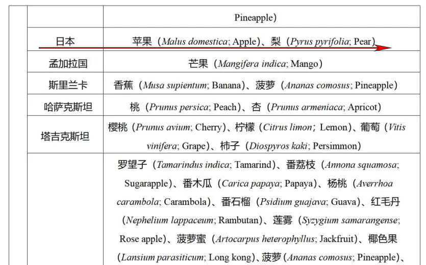 (图/获得我国检验检疫准入的新鲜水果种类及输出国家/地区名录截图)