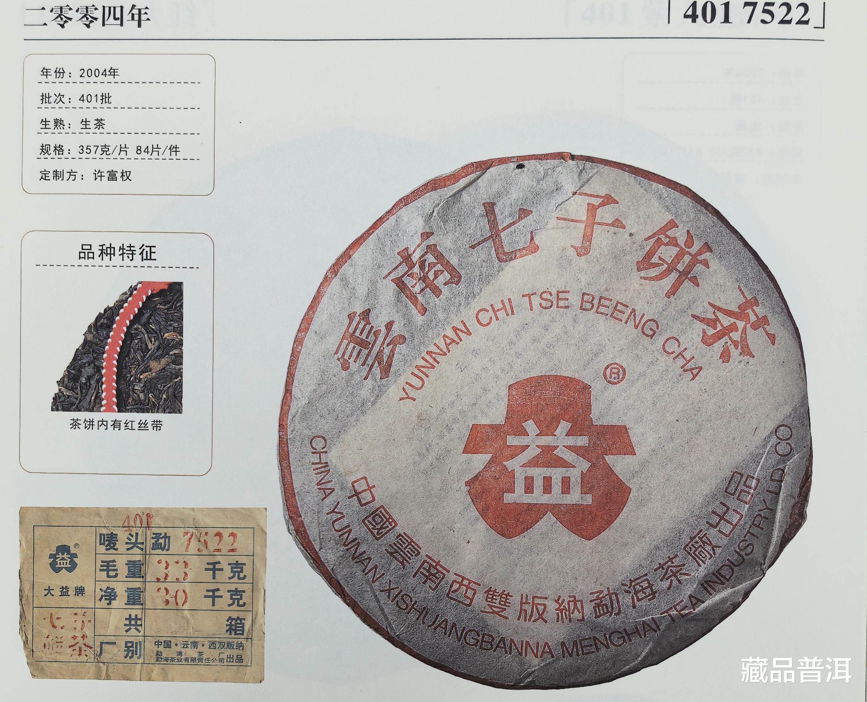 7522红大益在老茶迷圈子里受到追捧,前些年行情高的时候市场都找不到货,属于热门款明星品种。同年份还有401红大益青饼、402红大益大叶青饼等,版面都非常相似,该怎么区分呢?