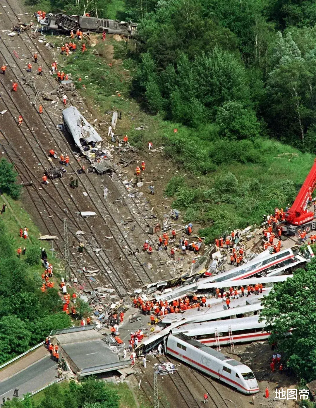 1998年,德国下萨克森州策勒县艾雪德镇,列车脱轨造成101人遇难。