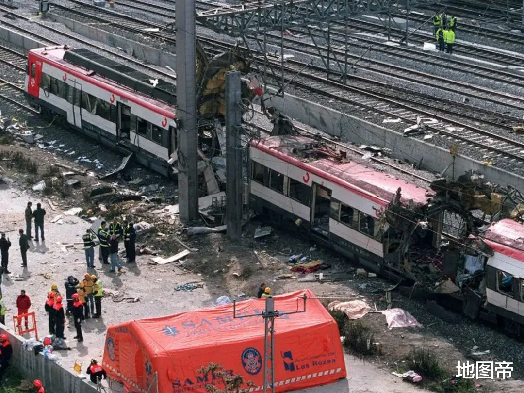 2004年,西班牙马德里,4列火车上发生了10次的爆炸,造成193人遇难。