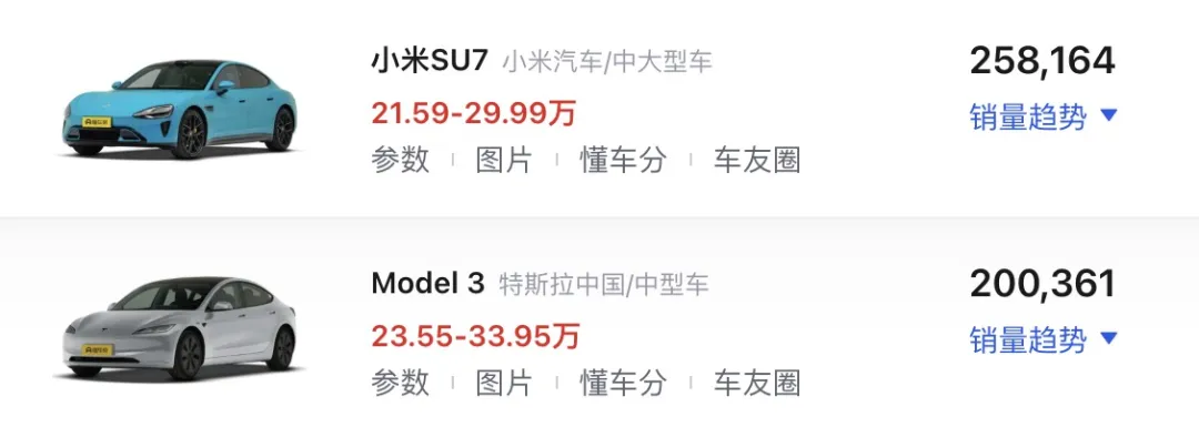 而小米 SU7 在持续争议中,整个2025 年卖出 25.8 万台,直接改写了特斯拉 Model 3 长期霸榜的市场叙事。