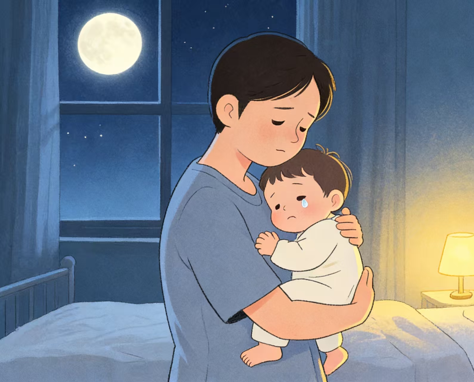 很多爸爸这时候会犯一个错误:要么妥协到底,要么强硬对抗。我表弟就是强硬派,娃哭就让他哭,结果娃哭到吐,全家一夜没睡。