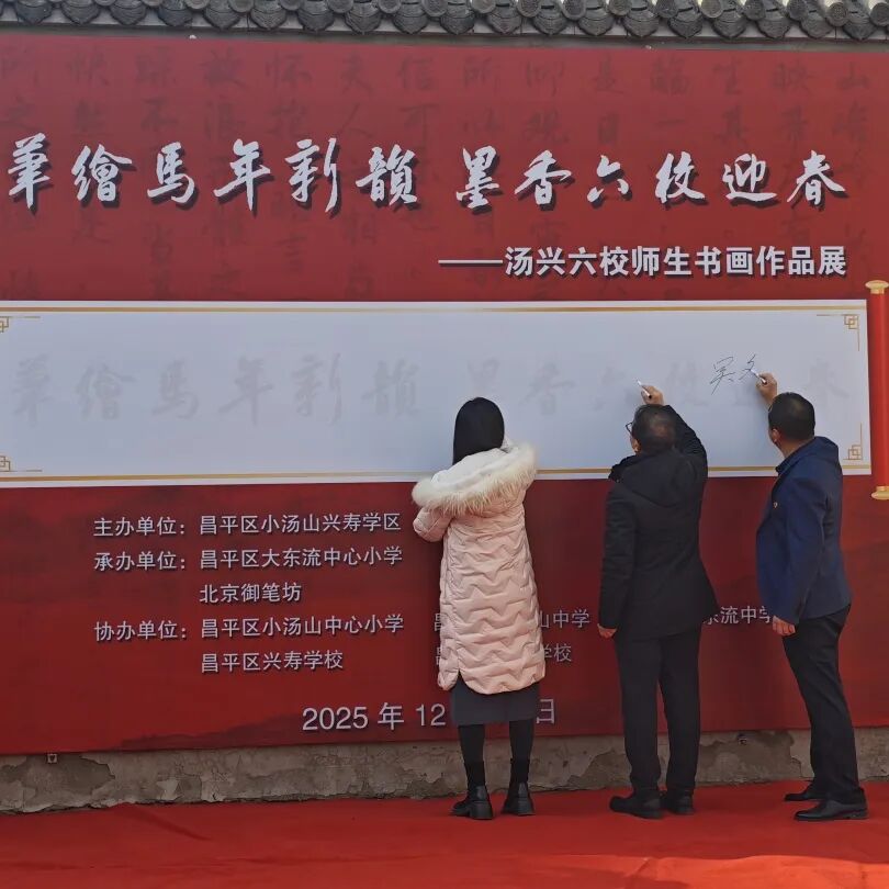 为传承中华优秀传统文化,弘扬生肖文化内涵,展现北京市昌平区小汤山兴寿学区六校艺术教育成果与师生精神风貌,12月19日下午,由小汤山兴寿学区主办、大东流中心小学承办,小汤山中学、小汤山中心小学、大东流中学、兴寿学校、上苑学校等协办的“笔绘马年新韵、墨香六校迎春”汤兴六校师生书画作品展暨迎新春书法笔会正式启幕。活动展期持续至12月31日,为冬日校园增添浓厚文化暖意。