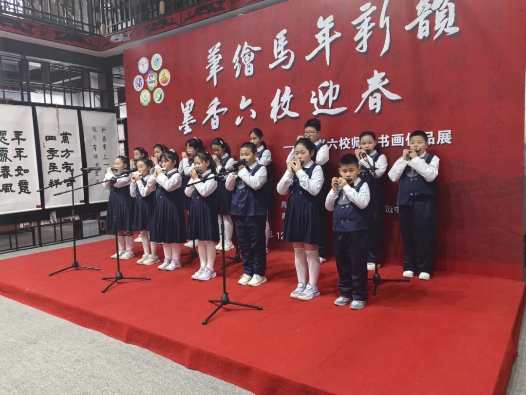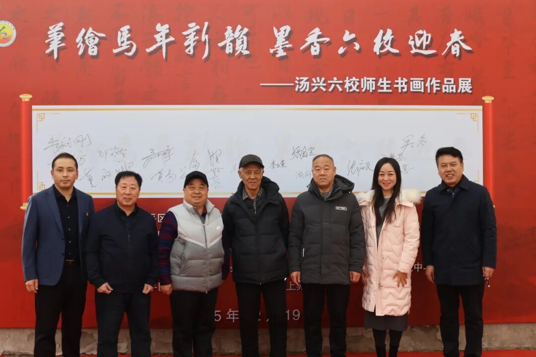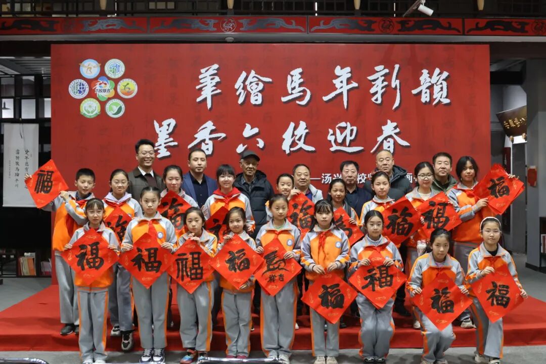 墨香传情,六校同心。六所学校的学生代表共同书写本次活动的主题,并齐诵“笔绘马年新韵 墨香六校迎新——汤兴六校师生书画作品展欢迎您”,彰显他们书法功底的同时,还表达对活动成功举办的祝贺。