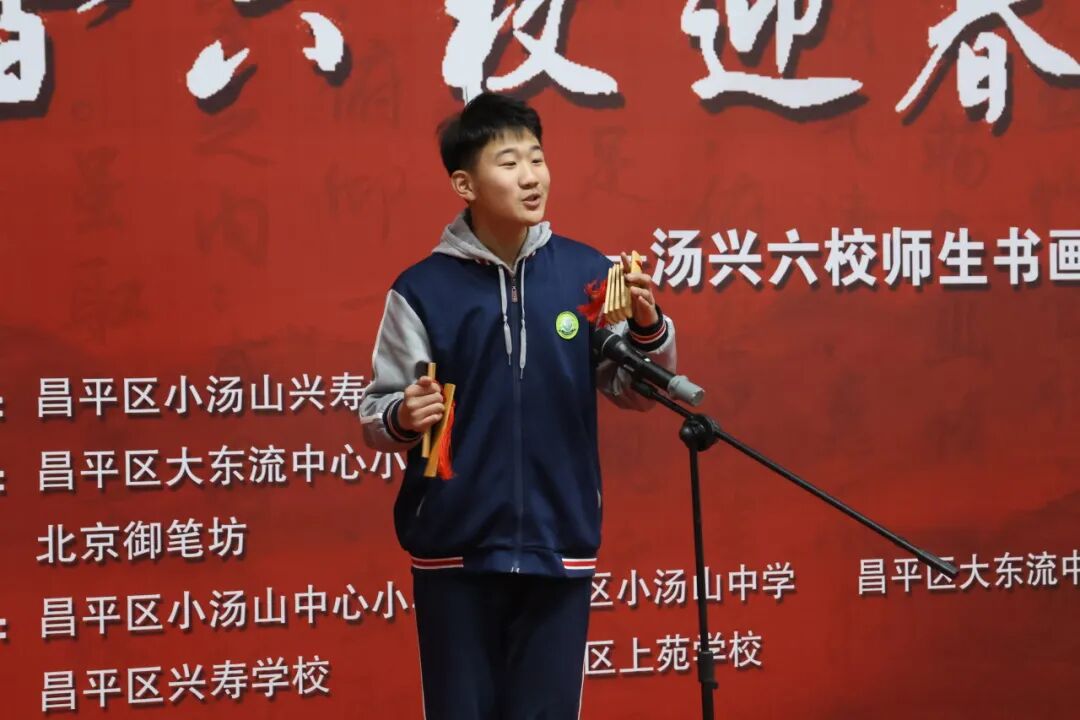 六所学校的艺术表演社团也来到现场,用自己的才艺表演,祝贺书画展的成功举办。大东流中学的舞蹈非遗花伞《曼伞遗韵》、小汤山中心小学的朗诵《绿叶的交响》、上苑学校的陶笛合奏《野餐》、小汤山中学的街舞《北京欢迎你》、兴寿学校的快板《同仁堂》、大东流中心小学的口琴合奏《歌声与微笑》和《我和我的祖国》,展示了各校艺术教育的丰硕成果。