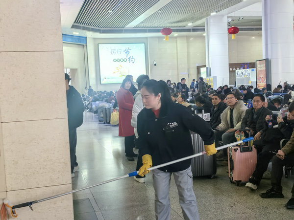 擦抹显示大屏、清理空调风机……人潮涌动的候车大厅里,那一抹抹蓝色工装身影不停奔走。张国萍与同伴们以匠心守初心,用无数次弯腰、一遍遍清扫,擦亮铁路出行的文明窗口,让洁净与温暖伴随旅客奔赴归途,成为春运里最动人的风景。