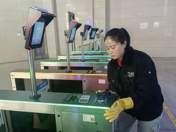 “春运期间保洁工作量翻倍,面对地面口香糖等顽固污渍,她总能从容应对,用铲刀细致铲除清理,再用抹布反复擦洗。”方丽告诉记者,站内配备专业保洁人员,分早、中、夜、机动四班24小时值守,采用“人工+智能机械”作业模式,实现全方位清洁维护。