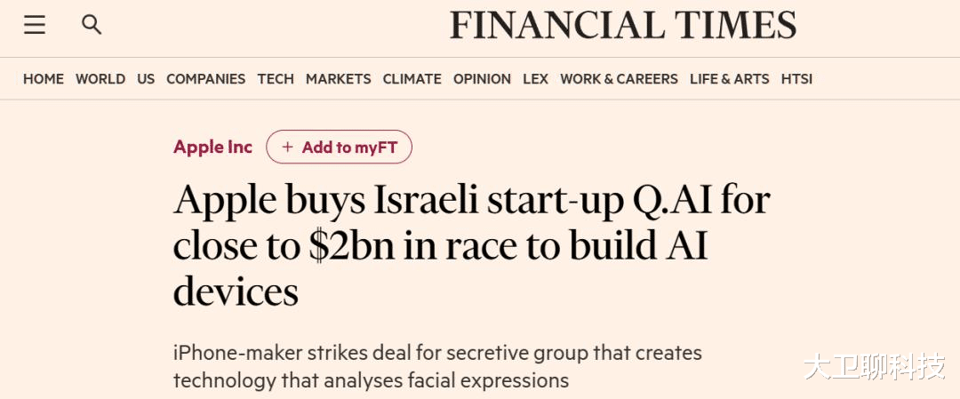 而AI眼镜可能是更大的变量。苹果收购Q.AI,正是看中其“通过面部微小运动进行无声交流”的技术,这显然是针对可穿戴设备的布局。在Meta、谷歌等已经推出AI眼镜的今天,苹果的入场可能引爆整个品类。