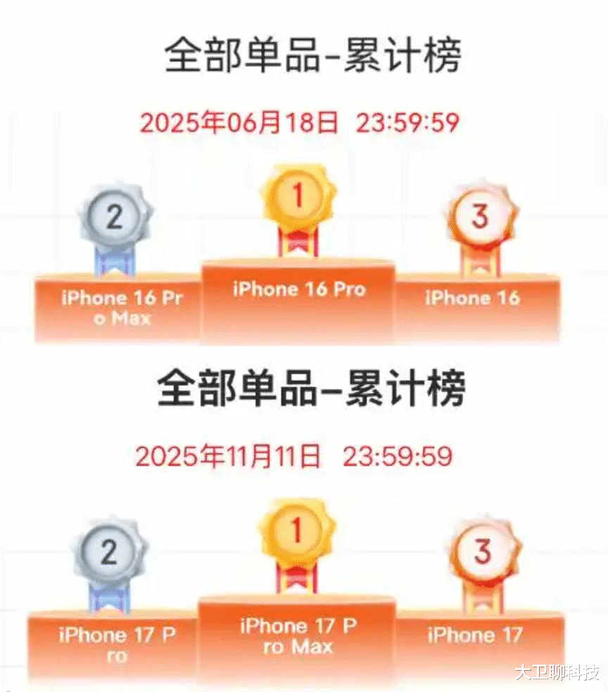 这不是段子,而是真实的市场选择。在618和双11的电商大战中,苹果包揽了手机单品销量前三名。消费者用钱包投票的逻辑很简单,当华为、小米、OPPO、vivo的高端机型价格不断上探时,苹果反而显得“实在”了。这种价格策略的微妙变化,让苹果在竞争激烈的中国市场找到了新突破口。