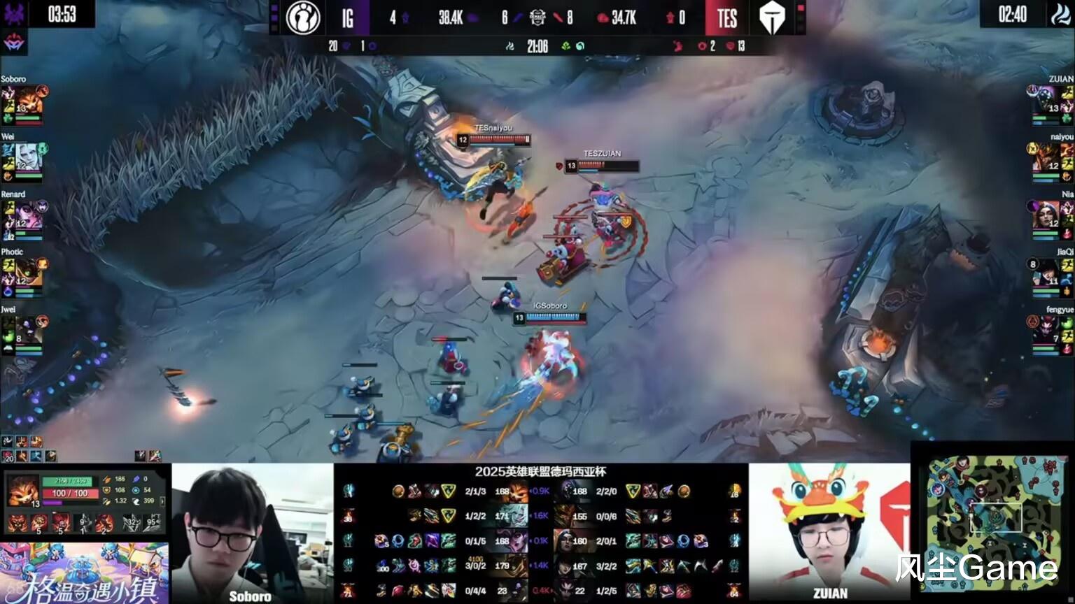 下一场比赛,IG要交手的队伍,是JDG和EDG的胜者,这两队都是全主力,EDG小组的时候,零封过IG,京东最近状态也很一般,感觉EDG是有机会进四强的,如果能把这两队的胜者赢了,那IG就真有点东西了,个人感觉IG是有机会打进决赛的,因为打滔搏这场看下来,团战是真没毛。