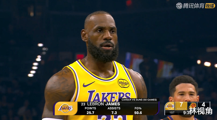 首节比赛开始,拉拉维亚连得5分,老詹中投打板命中,运气不错,湖人开局打出7-2的小高潮。