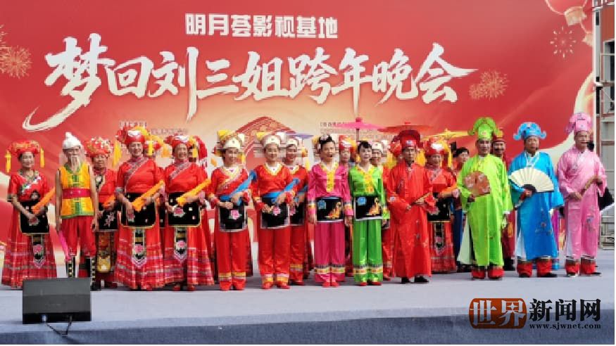 中梭通在线广西南宁讯(农渊 何冬妹 蒙仕荣 蓝添译)2026年元旦前夕,明月荟影视基地《梦回刘三姐跨年晚会》在广西南宁市举行。由广西南宁莲花亭艺术总团领航参加汇演的情景剧《刘三姐对歌》赢得了全场的掌声和高度评价。