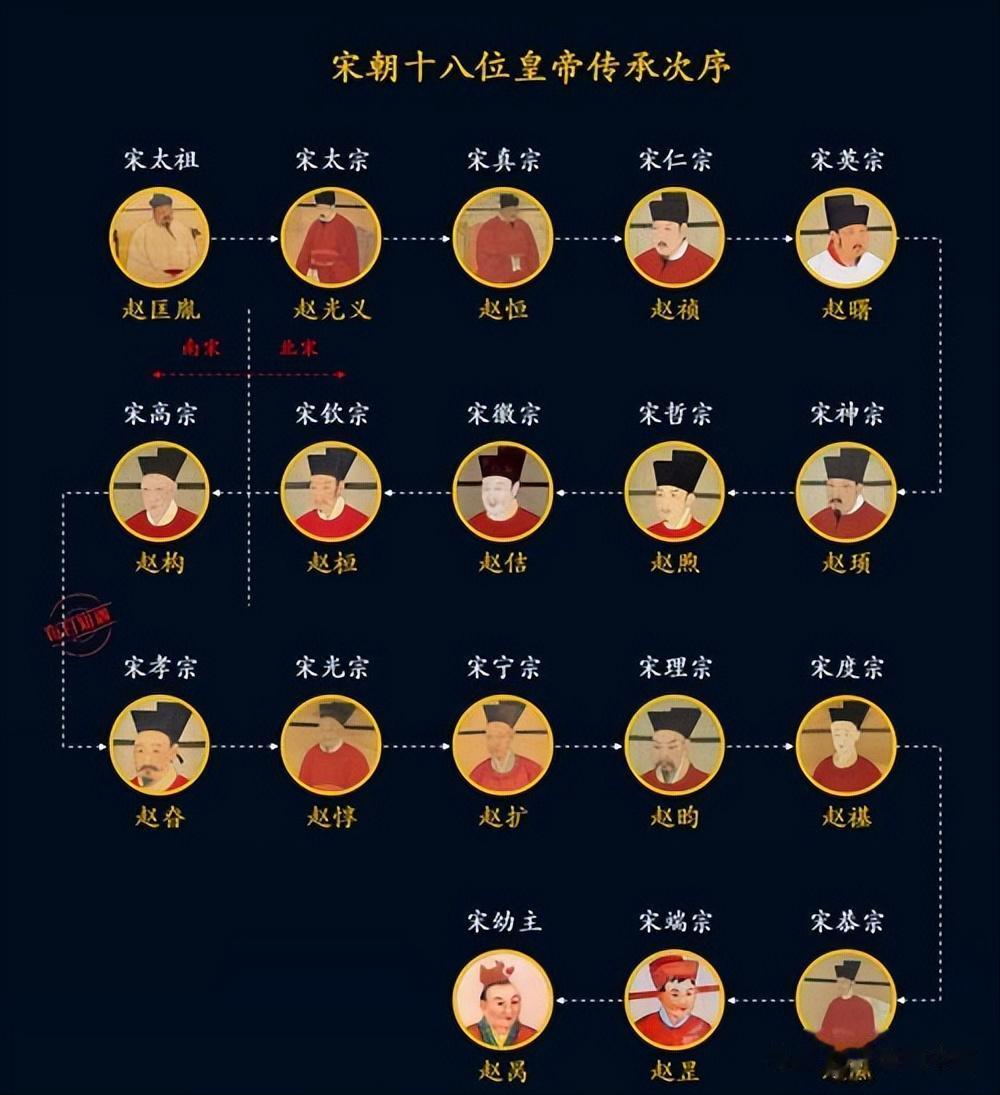 宋朝18帝中,6位没有亲生儿子继位,比例达33.3%(中国历代最高)北宋9帝,3人无子;南宋9帝,3人无子平均每位宋朝皇帝存活儿子仅1.8人,远低于唐朝的3.5人具体案例: