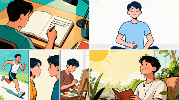 ◦ 艺术宣泄:听音乐、画画、写日记,将情绪转化为艺术表达。